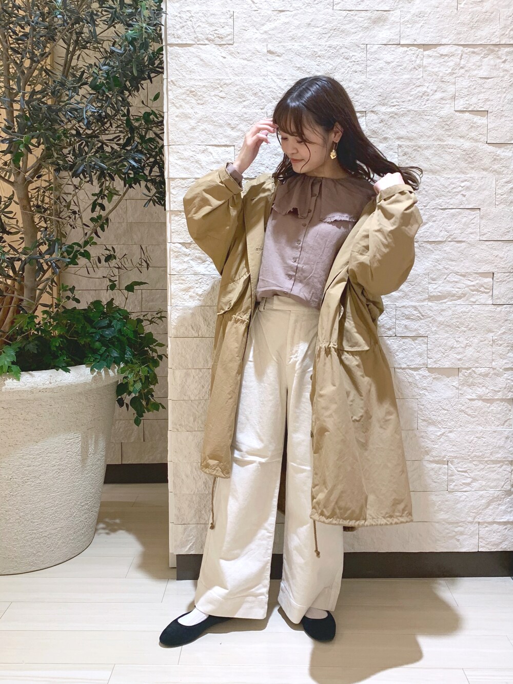 risapi🐰(骨格ウェーブ)(one after another NICE CLAUP)のシャツ/ブラウス「襟/ビッグカラーガーゼブラウス」を使ったコーディネート