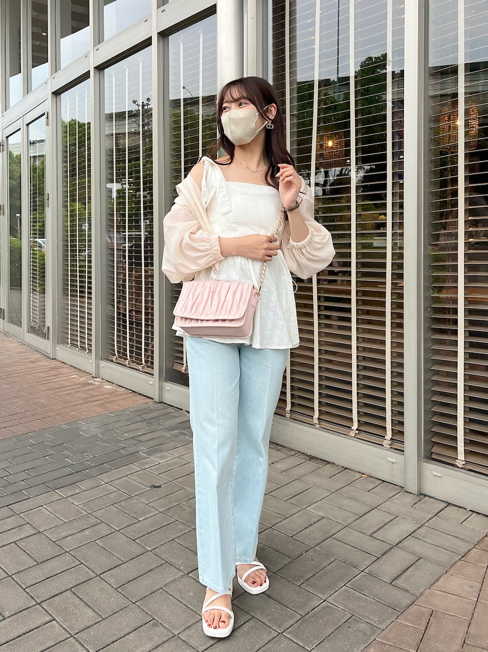 大人かわいいビスチェコーデ♡ 【トップス】 今期のトレンドのビスチェ♡ 絶妙な丈感でスタイルアップ効果◎ リボンは取り外し可能なので 合わせるお洋服によって雰囲気変えられます! Tシャツを中に合わせると カジュアルな印象にもなります! 【アウター】 透け感が大人かわいいシアーマンパ! カジュアルにもキレイめにも合わせれて 着回し抜群のアイテム! 7分袖ぐらいなので夏も軽く着て頂けます◎ 【ボトム】 ゆったりめにキレイに履けるデニム! シルエットがすごくキレイで とても履きやすいデニムになってます◎ デニムはトップスを選ばないので 1枚持ってると着まわし抜群です!