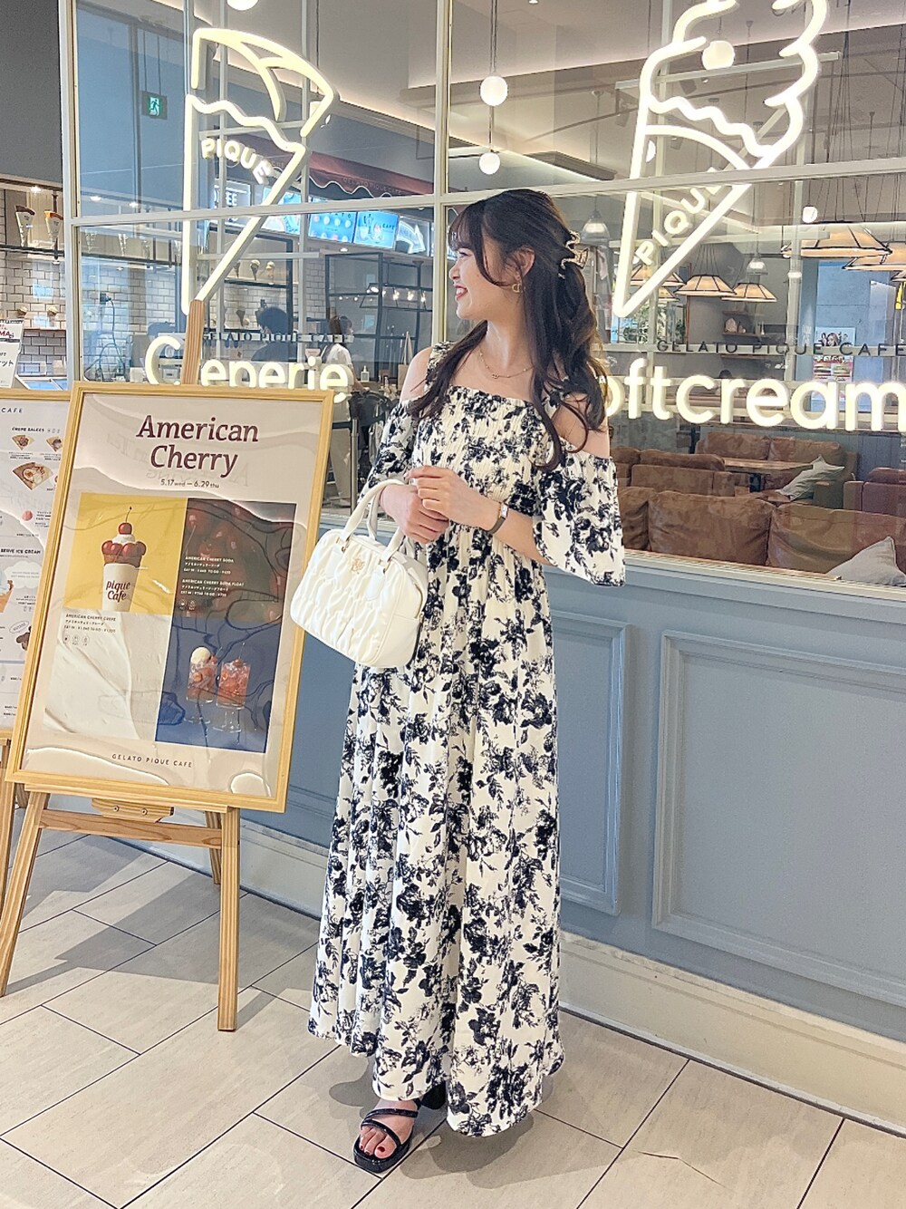大人かわいいワンピースコーデ♡ オフショルで大人可愛く着れる キレイめワンピース! 背中のリボンでウエストの調節可能なので 自分の体型にあったシルエットで着れます◎ 締め付け感なく着れるので暑い夏に ピッタリのワンピースです♪