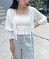 【トップス】 ビスチェと羽織りが2枚セットになってる 着回し抜群のアイテム! 別々でも着れるので色んな雰囲気を楽しめます! 短めの丈感になるので ハイウエストのボトムと相性◎ ビスチェは長さ調節も可能です! 【ボトム】 ゆったりめにキレイに履けるデニム! シルエットがすごくキレイで とても履きやすいデニムになってます◎ デニムはトップスを選ばないので 1枚持ってると着まわし抜群です!