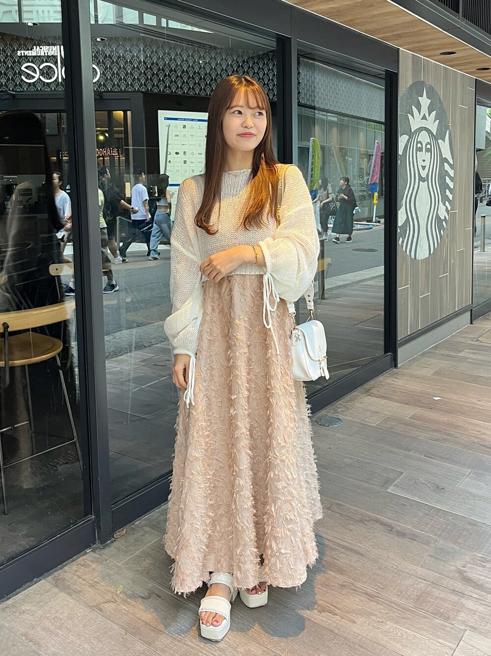 大人かわいい淡色コーデ♡ 【トップス】 シアー感が可愛らしい透かし編みニット♡ 透け感が女性らしい印象にしてくれます! 少し短めの丈感なのでバランスが取りやすく ワンピースに重ねても◎ デニムと合わせてカジュアルな スタイリングもおすすめです♡ 【ワンピース】 1枚で華やかな印象にしてくれるワンピース♡ 締め付け感なく着れるので 楽に綺麗なシルエットで着て頂けます◎ 後ろのリボンで身幅の調節も可能です! 合わせ方次第で印象がガラッと変わるので 色んな雰囲気で着て頂けます!