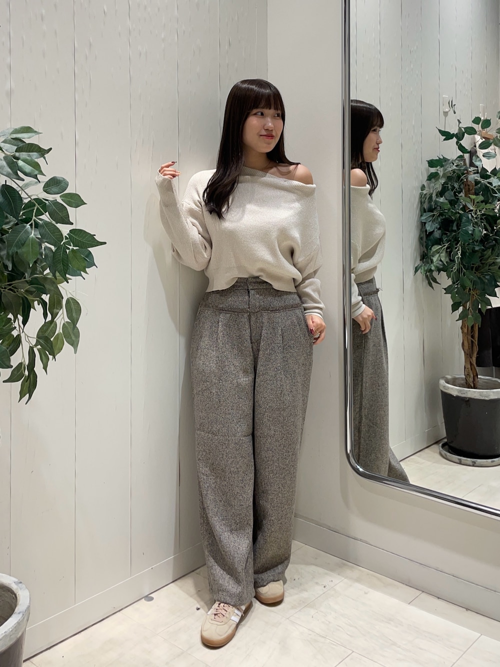 トップス : Fサイズ着用 パンツ : Fサイズ着用 ラメニットは身幅や腕周りゆったりしています! 伸縮性もあるので着心地◎です! おへそ下くらいの丈感になっています🫧 パンツは162cmで足の甲に少しかかるくらいの丈感です! 生地感は薄目ですが脚のラインを拾わないのでウェーブさんにもオススメ✨️ ----------------- 【スタッフ情報】 @risapyon_pal 身長 : 162cm 骨格 : ウェーブ 足のサイズ : 23.5~24cm