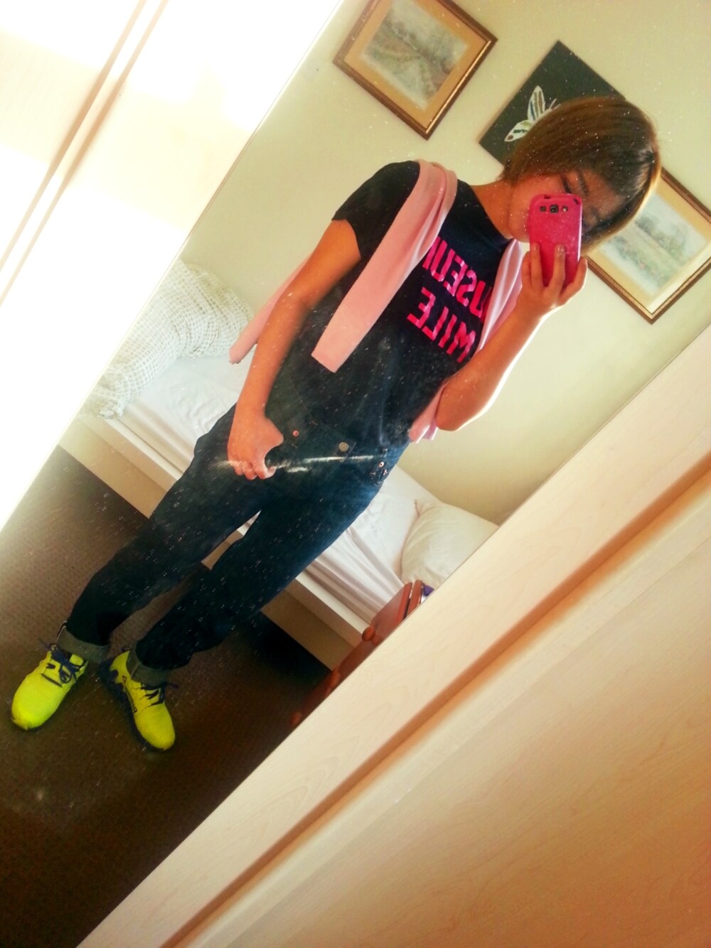 Mirror of shinzoneでさっとまとめました。 足元の蛍光イエローのreebokで ポイントを入れてみました。 初投稿でよくわかりません(^_^)