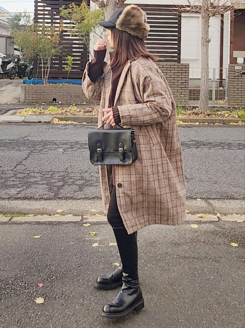 RIyO.のチェスターコート「グレンチェック ロングジャケットコート(裏キルティング)」を使ったコーディネート