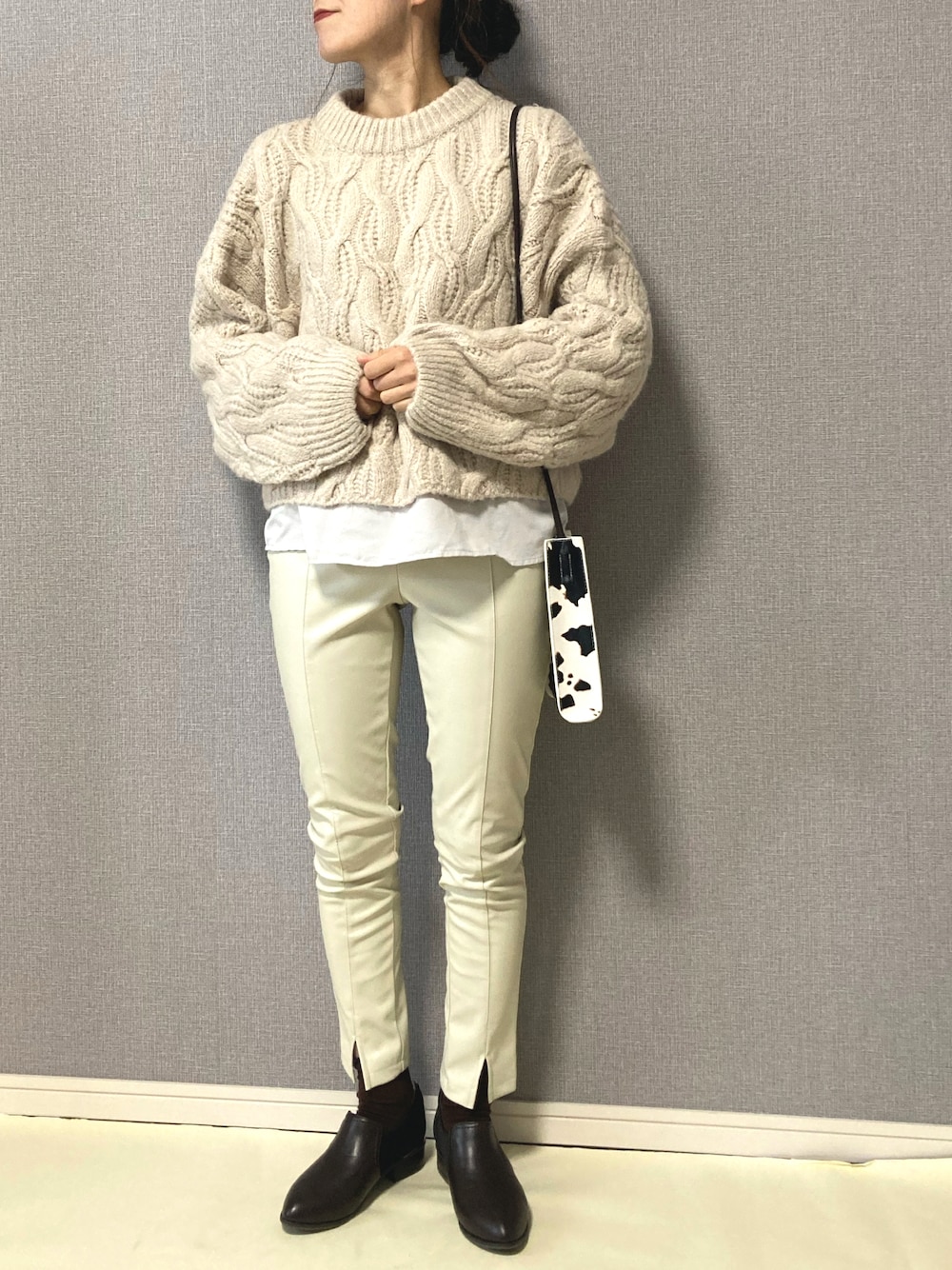 Riiisaのニット/セーター「ドルマンスリーブショートニット」を使ったコーディネート