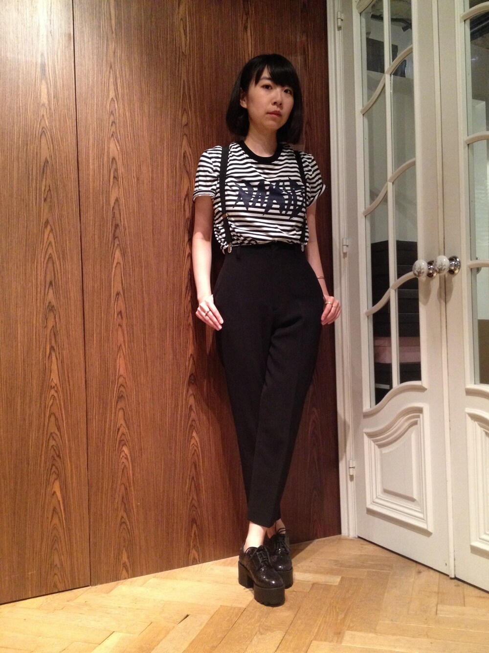 risa shimadaのTシャツ/カットソー「NAKID LOGO BORDER T-Shirts」を使ったコーディネート