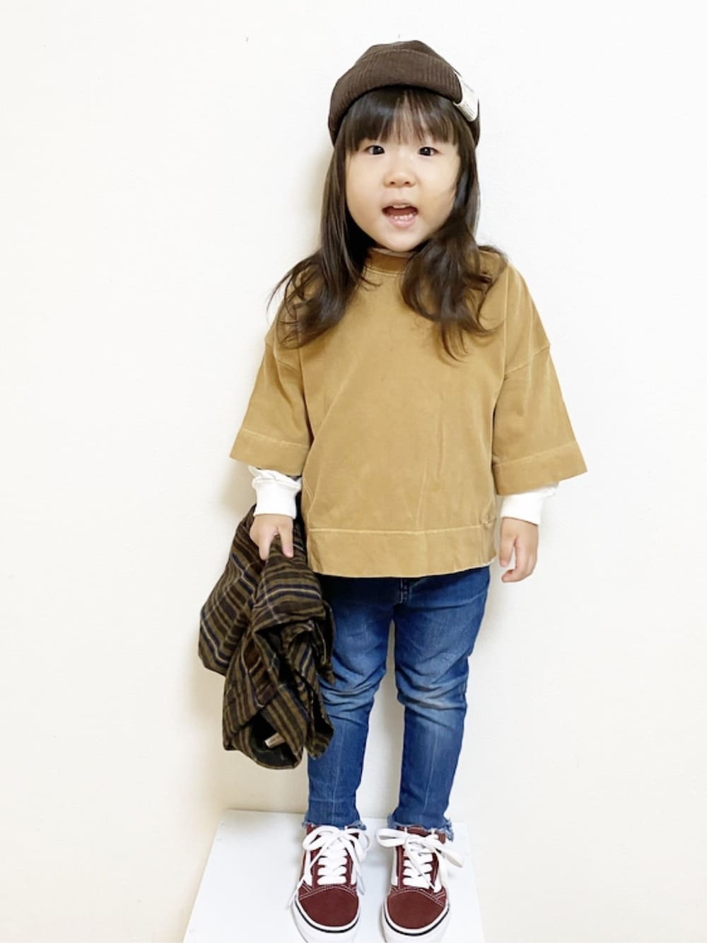Rikaのニットキャップ/ビーニー「カラーニットワッチ」を使ったコーディネート