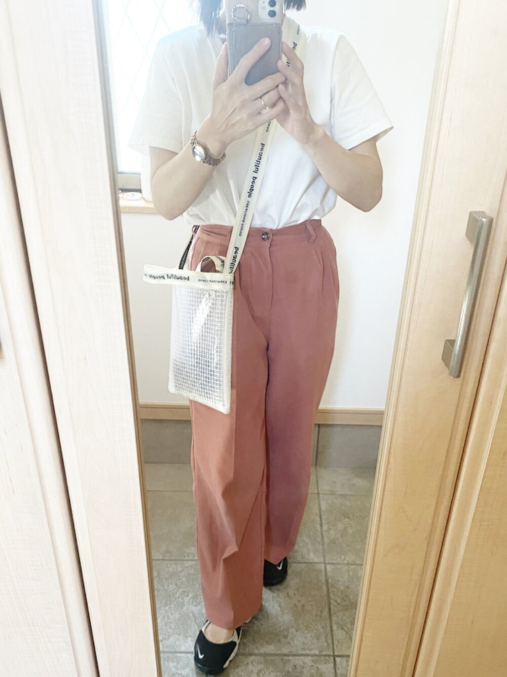 Rikaのショルダーバッグ「beautiful people “PLAID”ロゴテープビニールサコッシュ」を使ったコーディネート