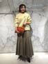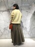 《スローンニット》 ウールカシミヤで滑らかな肌触りです。身頃と比べ、袖は細めの毛糸を使用しているので、めりはりがあります。 袖と裾のリブはゆるめです。シャツインもお勧めです。 ○着用感 光沢感:なし 重さ:ボリュームの割には軽い 《バイヤス切替ギャザースカート》 ボリュームはあるが軽いポリエステル素材で通年使用でき、シワにもなりにくいです。 身長147cmでもフラットなシューズと着用できる丈感です。 ○着用感 伸縮性:なし 光沢感:なし 裏地:あり ポケット:なし