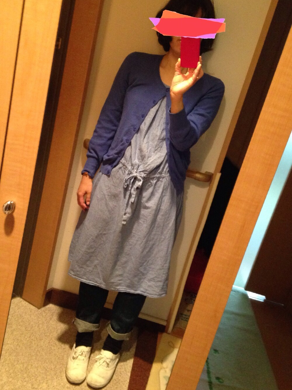 カーディガン:コムサデモード ワンピース:手作り デニム:ドミンゴ 靴:無印 肌寒い日曜日!