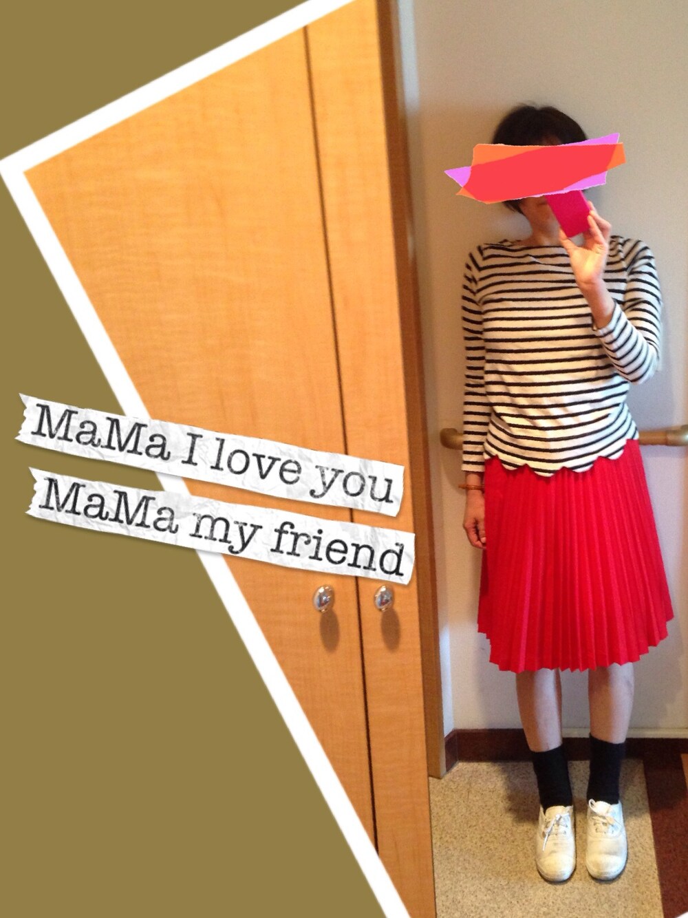 スカート:古着 ボーダー:ドットアンドストライプ スニーカー:無印 赤いスカートもなかなかはかなくなりました。