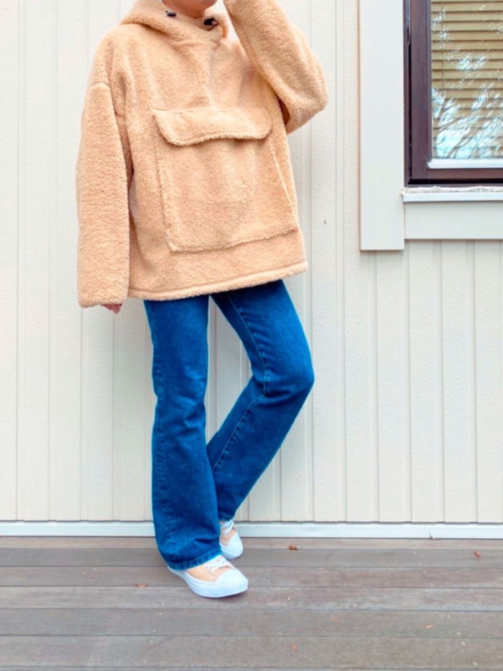 おはようございます! いつもご覧頂きありがとうございます👀 今回のコーデはモコモコパーカー第二弾! HAREのパーカーを着たコーデです めっちゃフワフワして暖かいし、大きいポケットもついてて便利なので気に入ってます笑