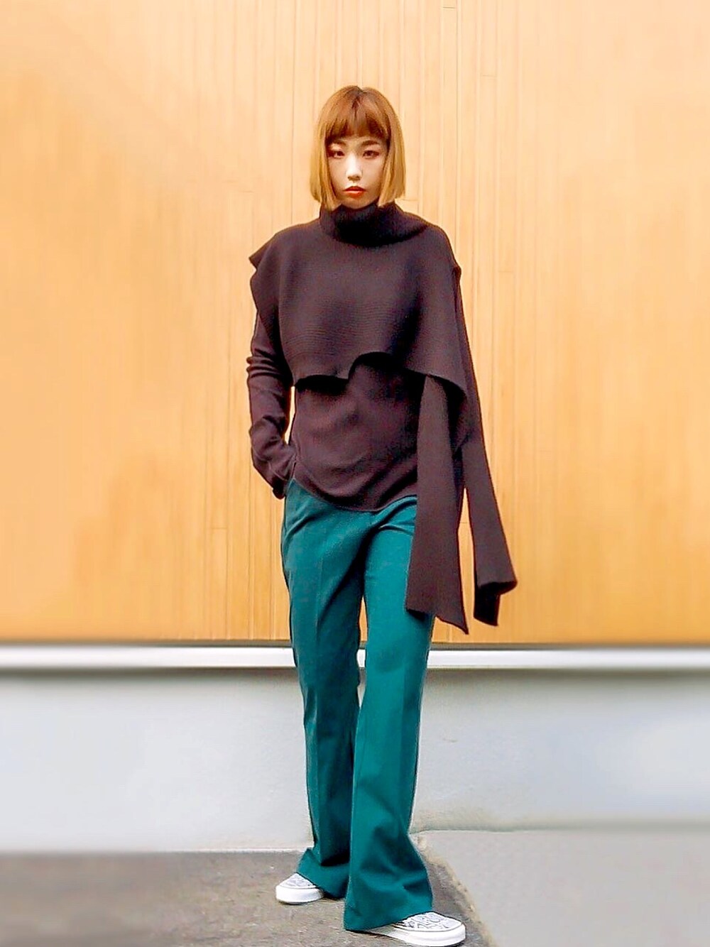 Rita.05のベスト「FEKETE ASSYMMETRY KNIT VEST」を使ったコーディネート