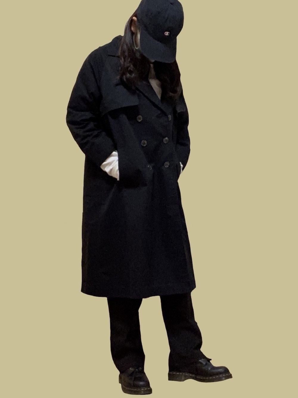 投稿見てくださりありがとうございます🥰 オールブラックだけどキャップとトレンチコートでカジュアルに✌︎