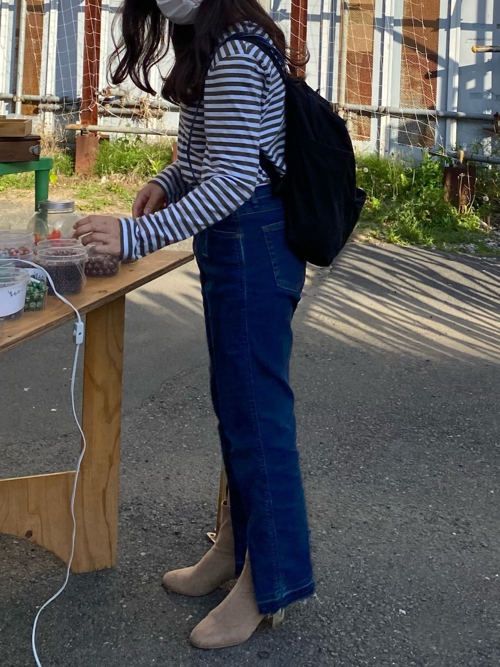 Naのサロペット/オーバーオール「SOMETHING × FREAK'S STORE/サムシング 別注FLARE SALOPETTE/別注フレアサロペット(ネイビー)」を使ったコーディネート