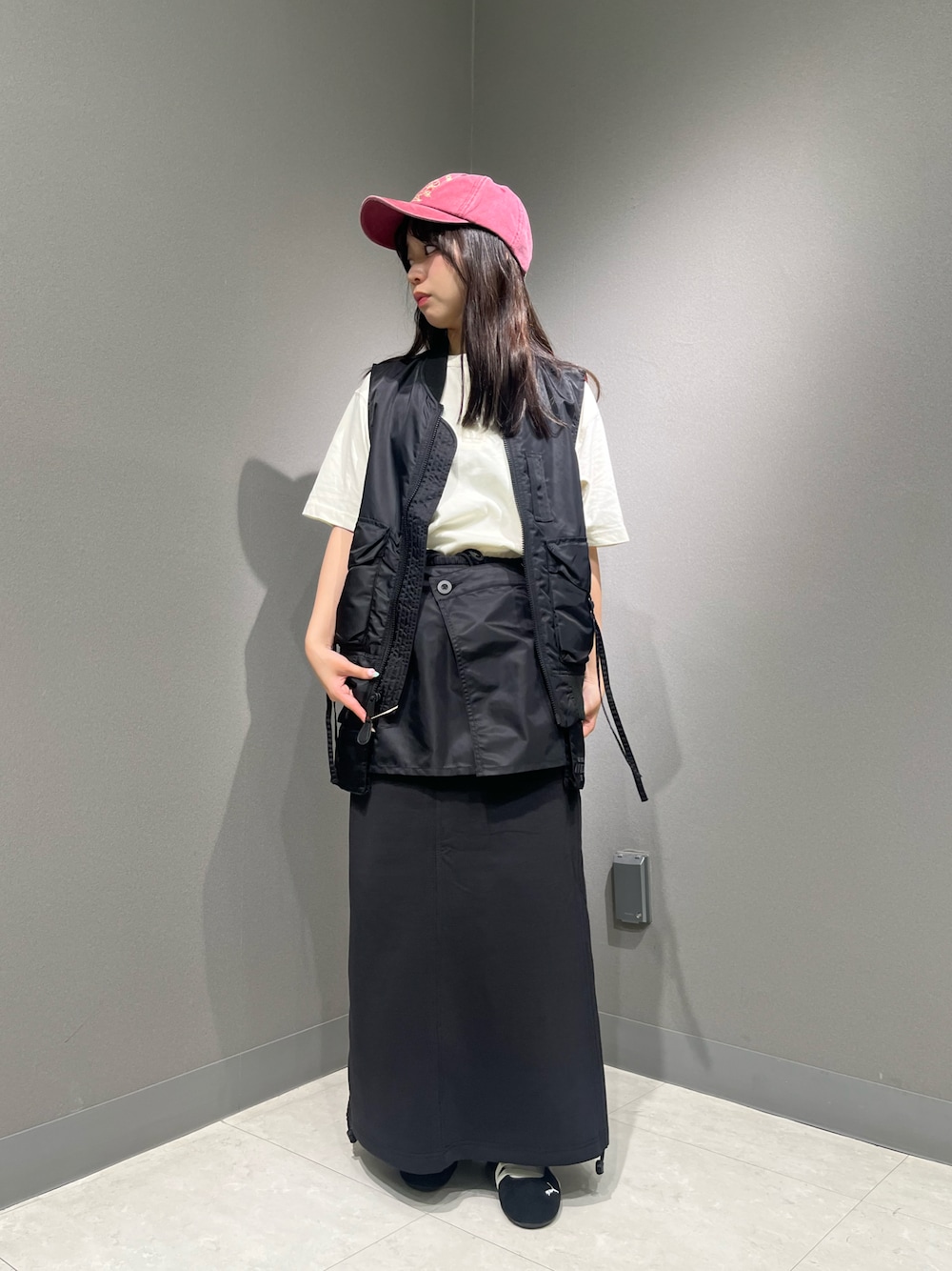 【着用サイズ】 ベスト:M Tシャツ:M スカート:F キャップ:F