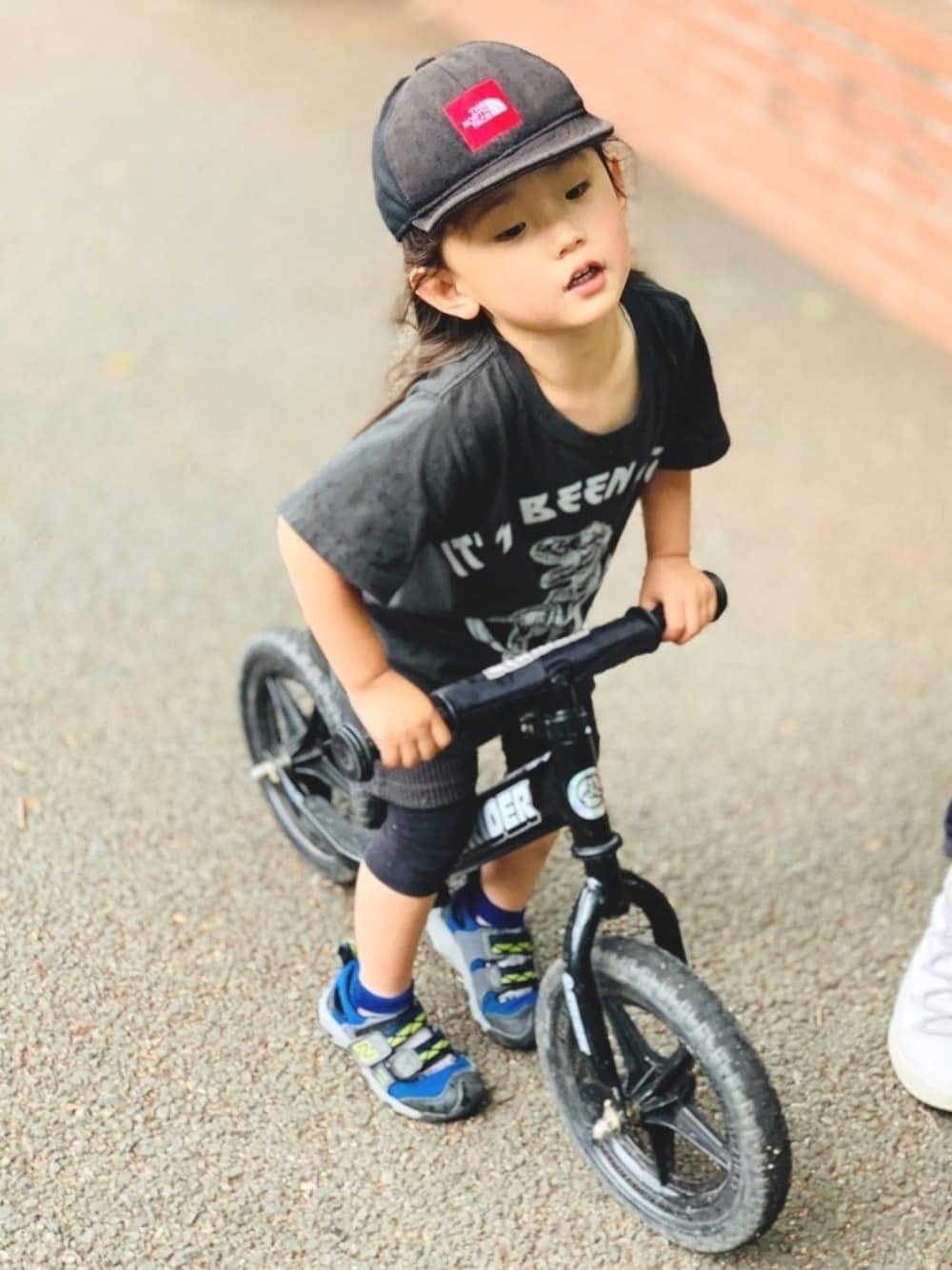 ストライダー定番コーデ♪ (いつも同じ服ですみませんw) 保育園始まってから乗る機会減ったな〜 この土日は天気がいいから公園行こうかね✨