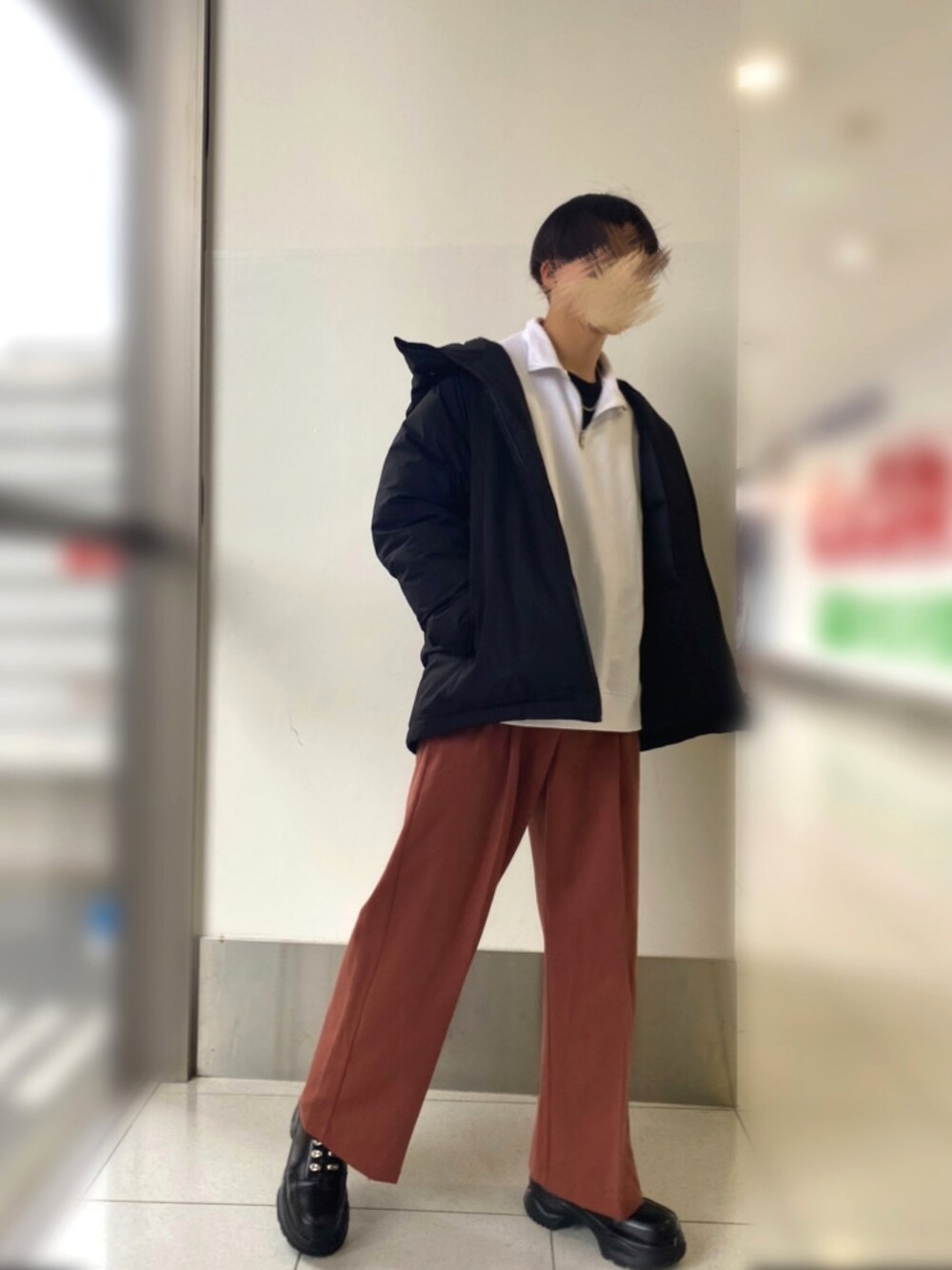 今回は最近流行りのハーフジップをベースにフレアパンツでアクセントを加えてコーデを組んでみました!⚫️⚪️🟤 このkutirのパンツはドレープが超効いていて、とてもお気に入りです✨