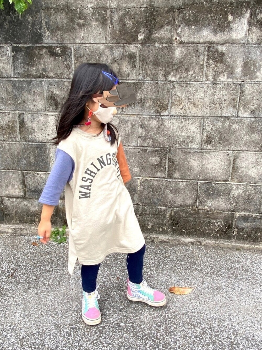 沖縄25℃コーデ。 母と色味が奇跡的に一緒だった日👵👧 最近禰豆子に憧れて髪下ろすようになった。 vansのディズニーコラボスニーカー、サイズアウトなりそうなので履かせまくらねば! それにしても、靴紐リボン結び出来るようになってて驚いたわ。