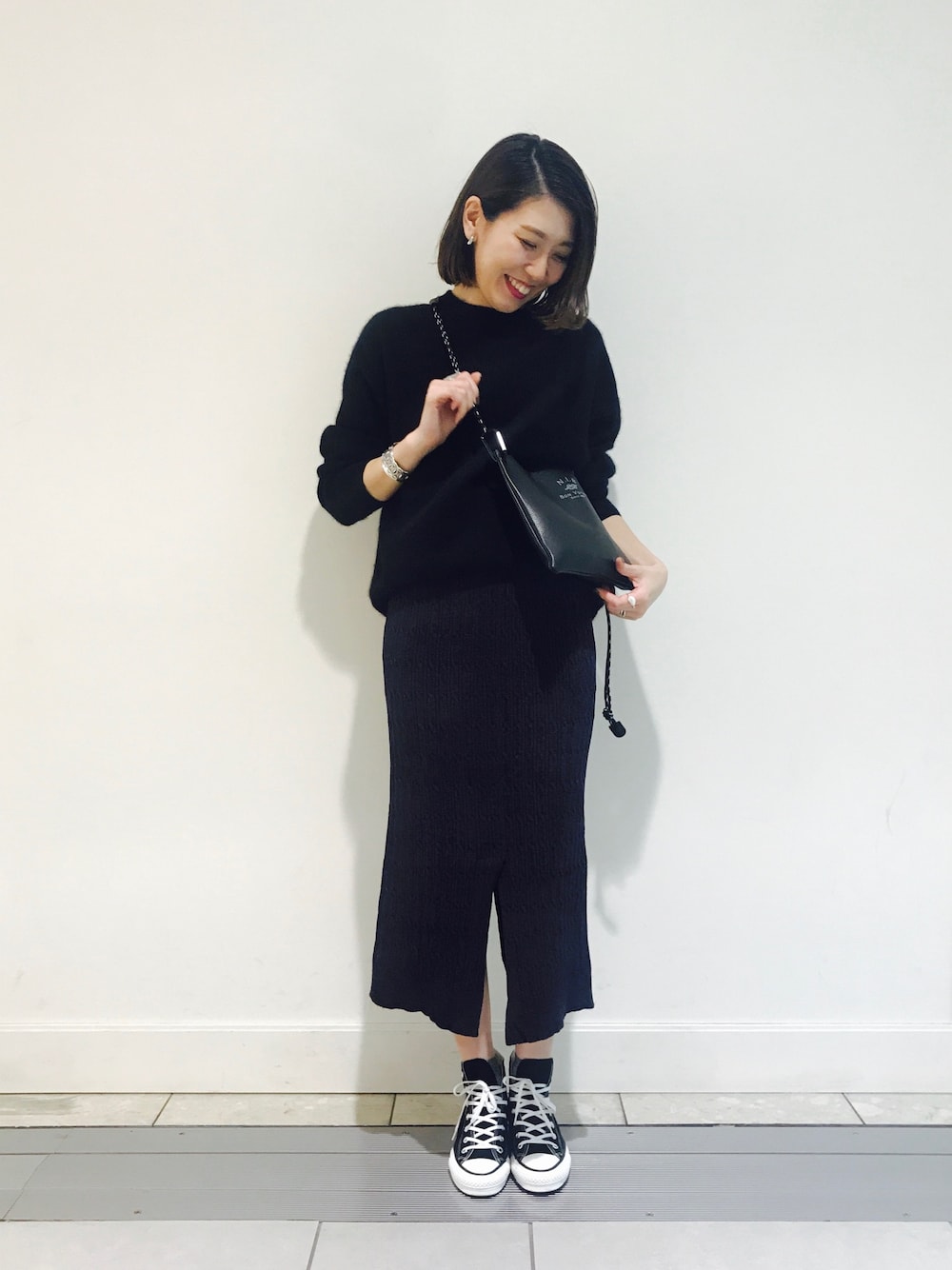 いつもいいね❤️セーブ✨ありがとうございます😊 今日は久しぶりのスカートスタイルです。 CEPIE.のニットスカートはシルエットがキレイで細見えするのでありがたい♪