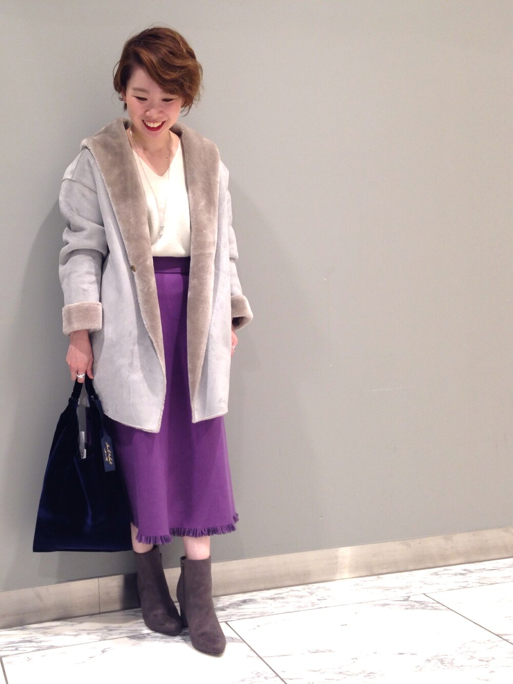 ☺︎いこまい☺︎(RIVE DROITE 名古屋PARCO)のムートンコート「抜き衿エコムートンコート」を使ったコーディネート
