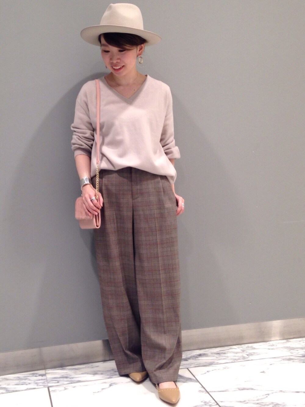 ご覧頂き、ありがとうございます♪♪いいねや、フォローも嬉しいです♡ ありがとうございます‼︎ ピンクとブラウンでほんわかカラーでまとめました(*´∀`)♪ お袖のボリュームがかわいいニットは、ウール100%であったかいです‼︎