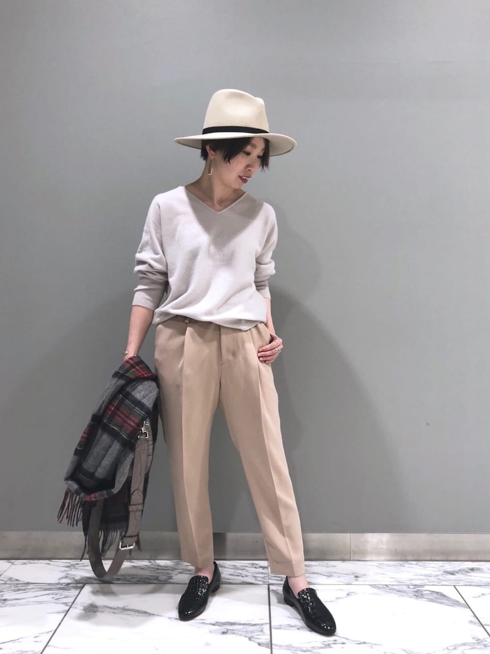 ☺︎いこまい☺︎(RIVE DROITE 名古屋PARCO)のニット/セーター「【洗える】カシミヤVネックドルマンニット」を使ったコーディネート