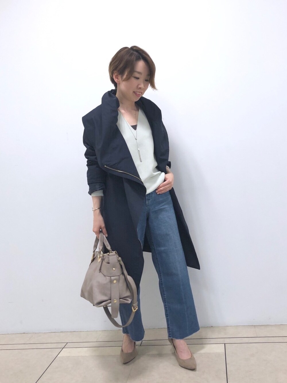 ご覧頂きありがとうございます。 春のカジュアルデニムスタイルです‼︎ セミワイドのデニムは裾が切りっぱなしになっていて、小柄さんでもはきやすいパンツです♡