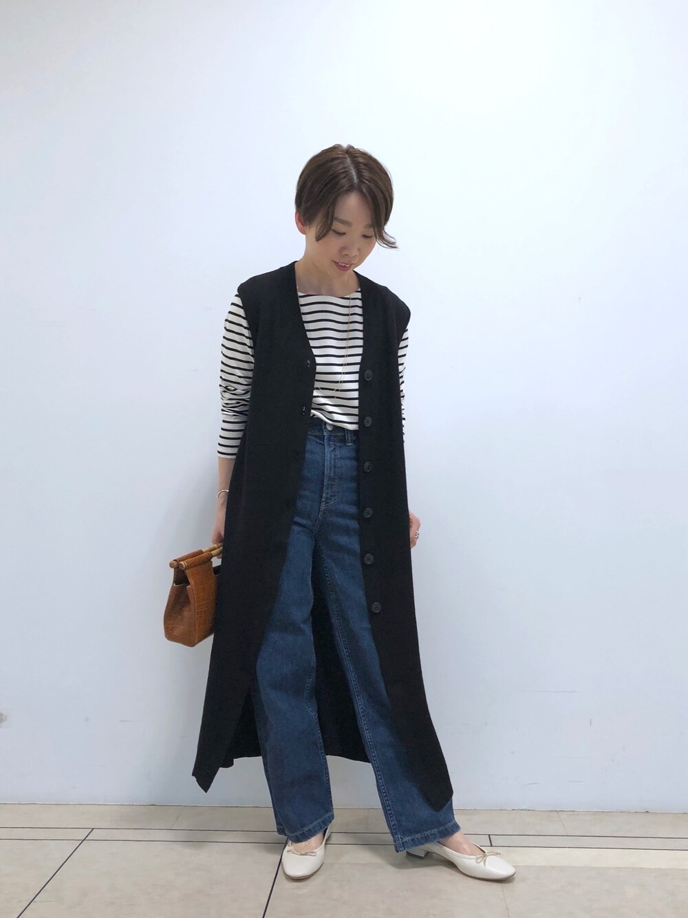 ご覧頂きありがとうございます♪♪ ロングジレとボーダーで大好きなマリンスタイルです♡ ジレはボタンを留めて、ワンピースでも着れちゃいます‼︎