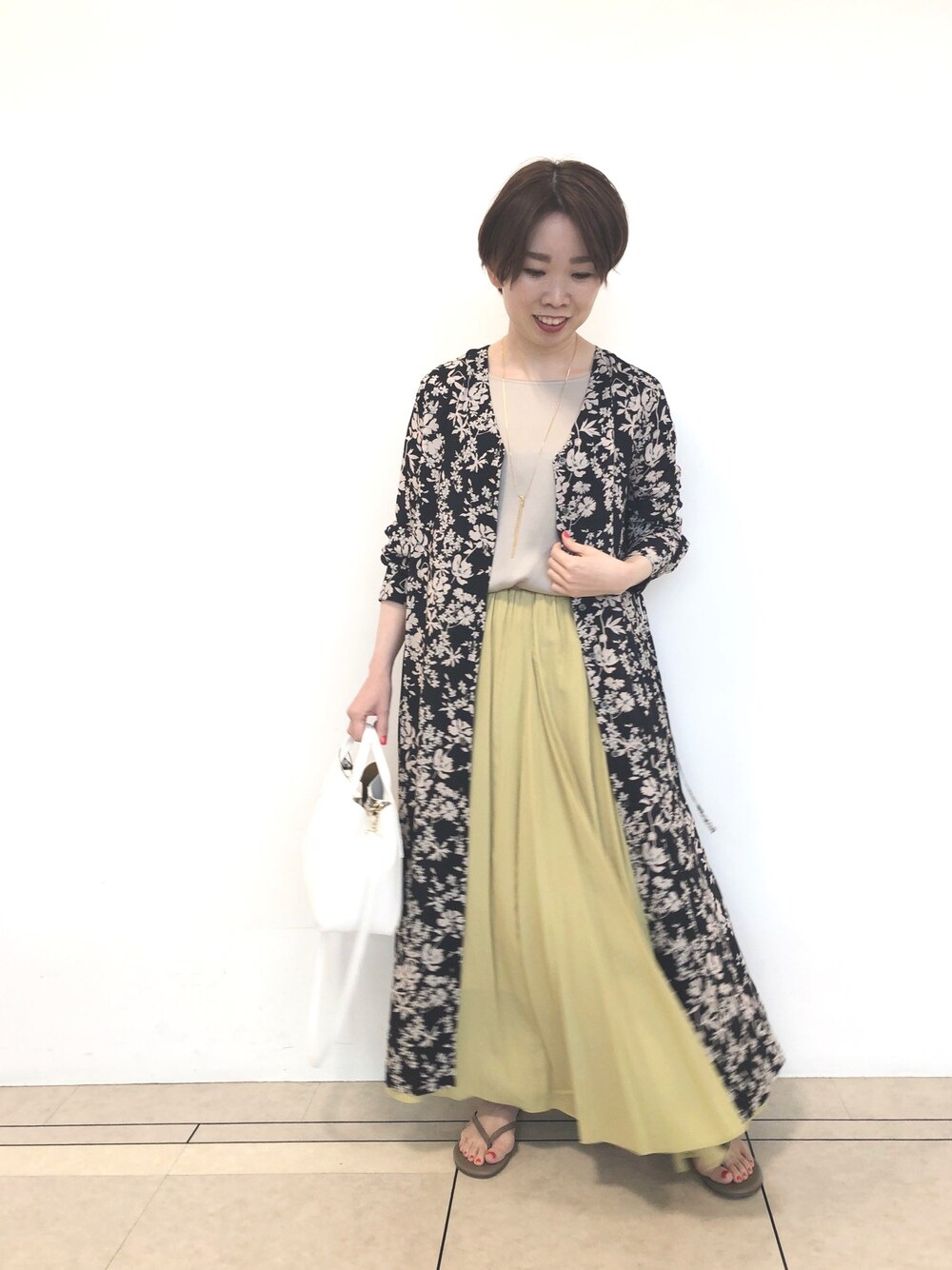 ☺︎いこまい☺︎(RIVE DROITE 名古屋PARCO)のワンピース「美シルエット 手洗い可 ヴァカンスフラワーフロント釦ワンピース (フレア)」を使ったコーディネート
