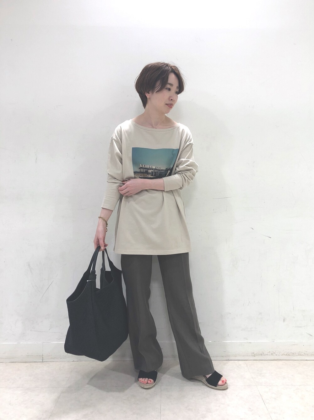 ☺︎いこまい☺︎(RIVE DROITE 名古屋PARCO)のTシャツ/カットソー「存在感のあるプリントが目を引く PHOTO転写Tシャツ (ミドル丈)」を使ったコーディネート