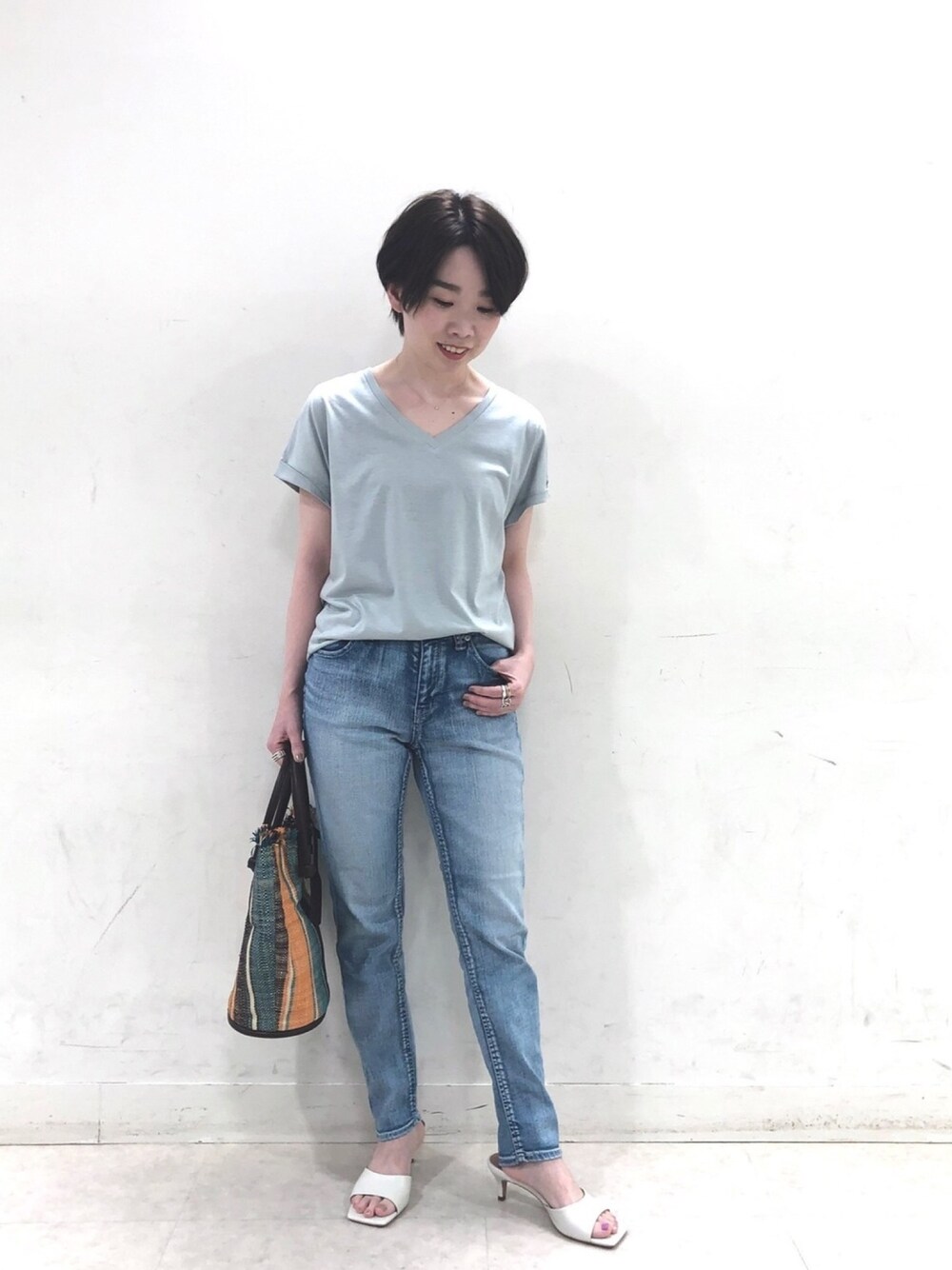 ☺︎いこまい☺︎(RIVE DROITE 名古屋PARCO)のTシャツ/カットソー「リヨセルコットンVネックカットソー」を使ったコーディネート