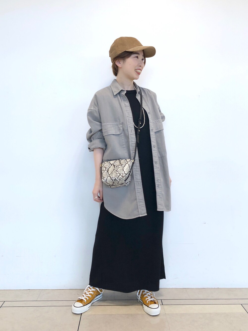 ご覧頂きありがとうございます♪ ワンピースにサラッとシャツを合わせ! キャップとスニーカーでカジュアルにまとめました。