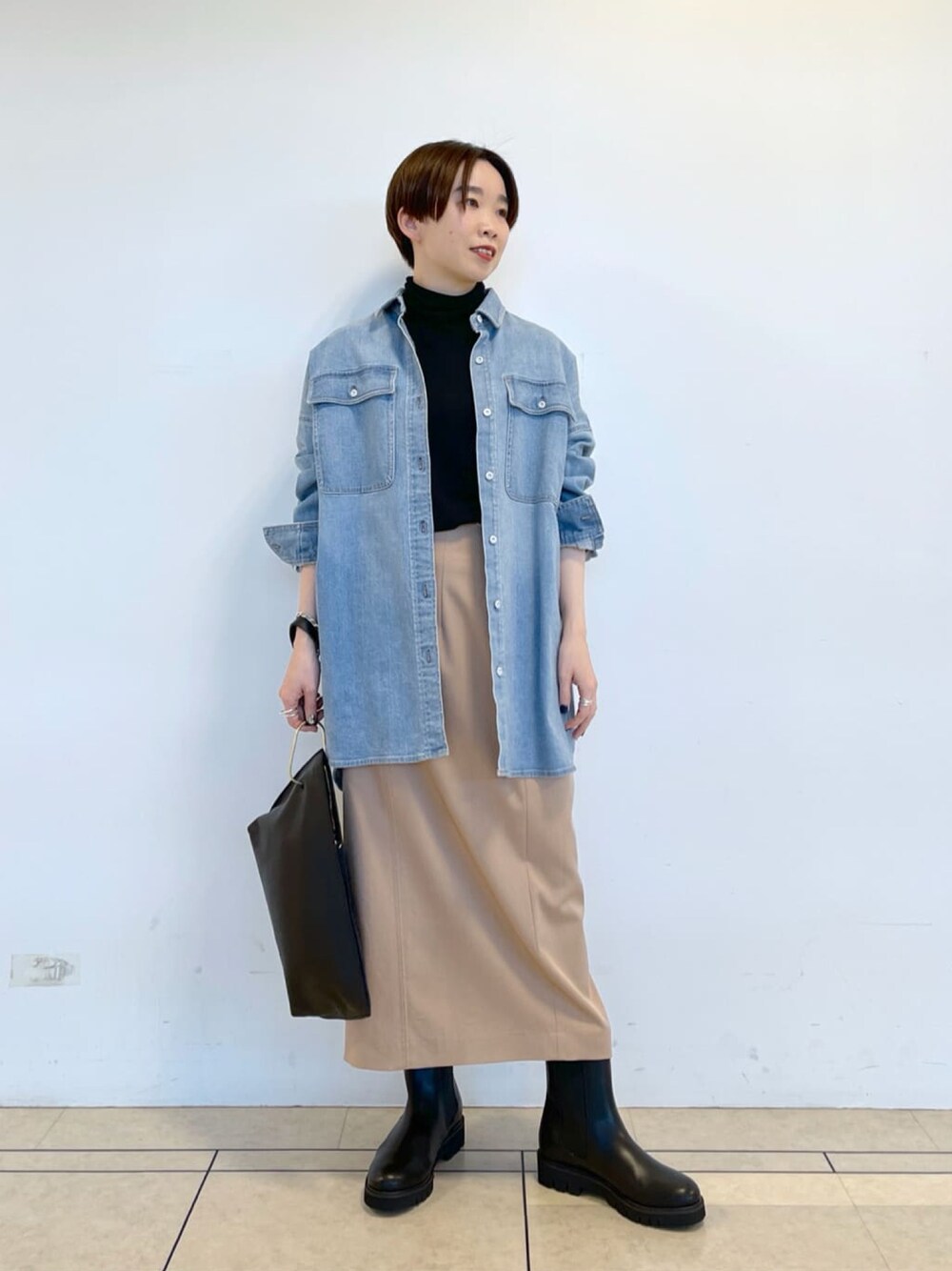 ご覧頂きありがとうございます😊 ゆるっとしたシルエットが可愛いデニムシャツ!まだ寒いのでタートルと合わせました✨ 春になったらTシャツにサラッと羽織りたいです🌸