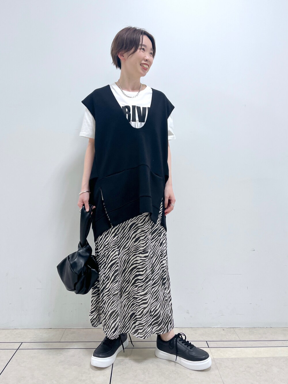 ご覧頂きありがとうございます😊 ベストを使ったレイヤードスタイル。 カラーはモノトーンで合わせてモードな感じに🦓✨