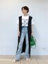 ご覧いただきありがとうございます😊 Tシャツにデニムの定番コーディネートも、ジレを合わせるだけでいつもと違う、オシャレ度UPなスタイリングに✨ こちらのジレは、ワンピースとしても着れちゃう、着回し力抜群なアイテムです😏