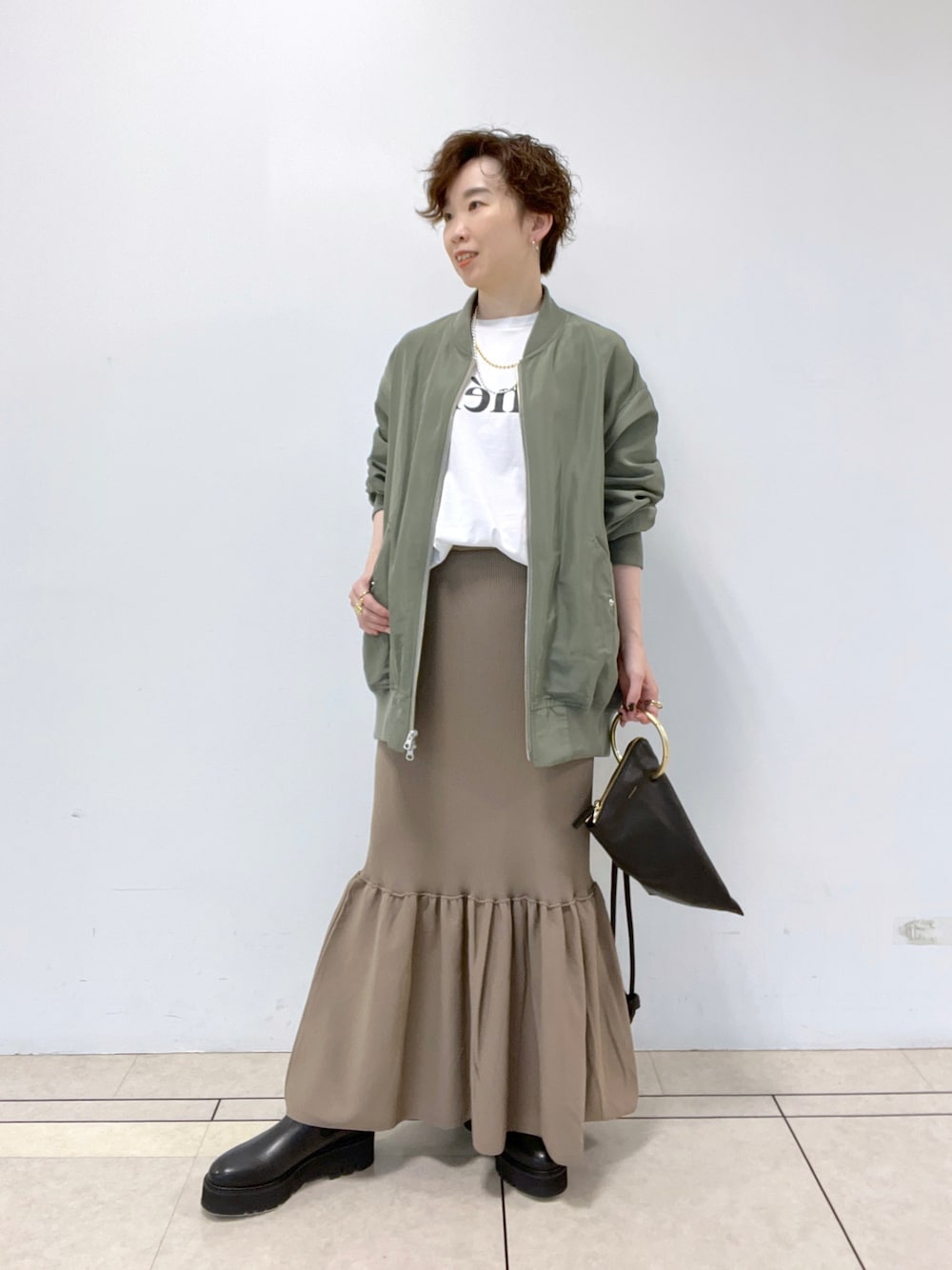 ご覧いただきありがとうございます😊 マーメイドスカートにミリタリブルゾンを合わせてカジュアルに…🌱