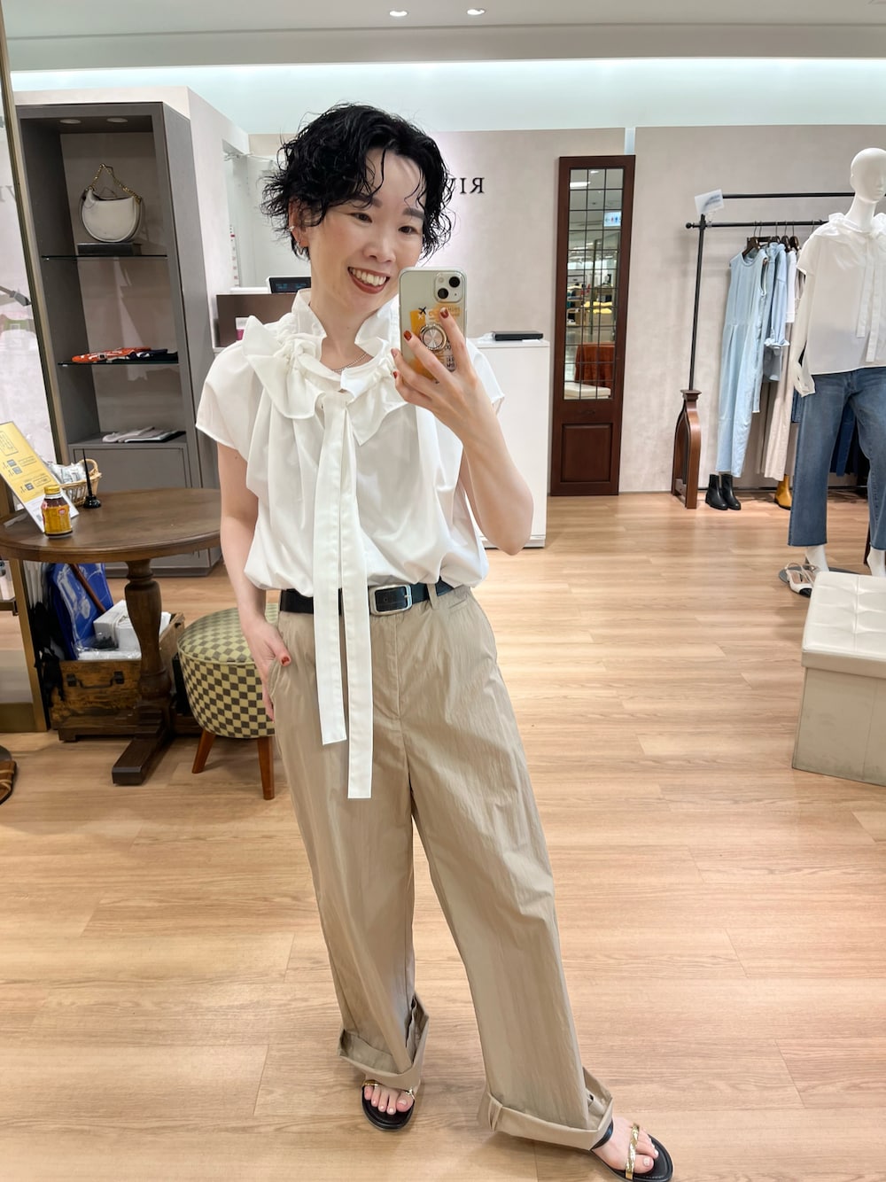 ☺︎いこまい☺︎(RIVE DROITE 名古屋PARCO)のその他パンツ「シンチバック付ワイドパンツ」を使ったコーディネート