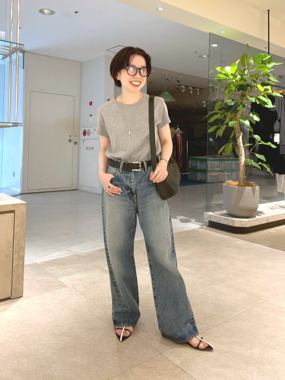 Tシャツ、デニムのシンプル夏コーデ。 小物はblackでまとめました。 シンプルな組み合わせには、小物でアクセントをつけるのがオススメです。 OKAYAMAベーシックデニムは34サイズをリアルバイしています。