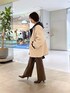 昨年も大人気だったフードボアコート。 軽くて気軽に羽織れてあったかいコートです。 スウェットとボアコートだどカジュアルになるので、ソモウフレアパンツで少しキレイめな感じをプラスしました。