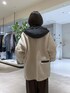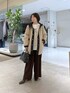 ベージュとブラウンで秋らしいカラーでまとめました。 フードボアコートの切り替えのブラックと、バッグもブラックにしてアクセントに。