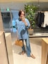 RIMH ショルダーパッドロングシャツ 取り外しが出来る肩パットがついているので、少しハンサムな雰囲気で着ていただけます。 カッティングデニム 柔らかいデニムでとっても穿きやすく、スッキリと脚を魅せてくれるデニムです。 153cmで34サイズを着用しています。
