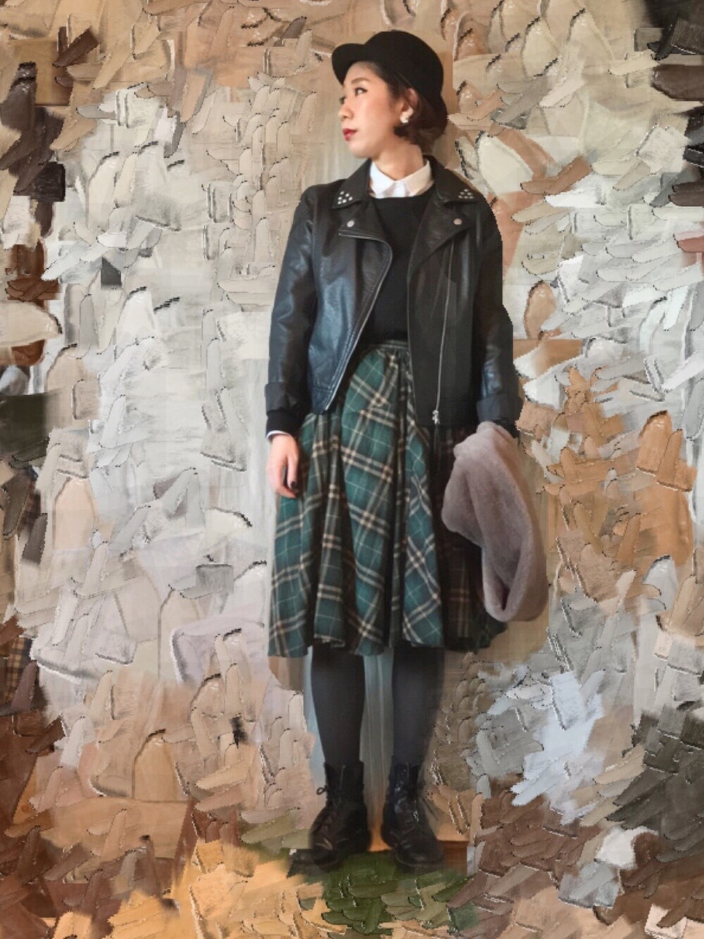 チェックスカート➕安定のライダースで★