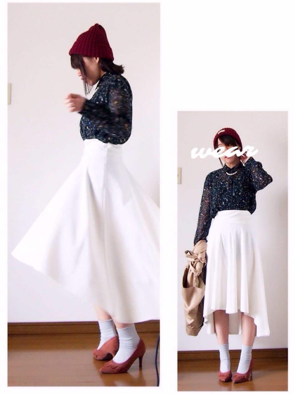 フレアスカートの揺れ方好き。 このゴムなのにウエスト周りすとんってなるシルエットのデザインも嬉しい😘