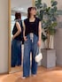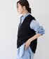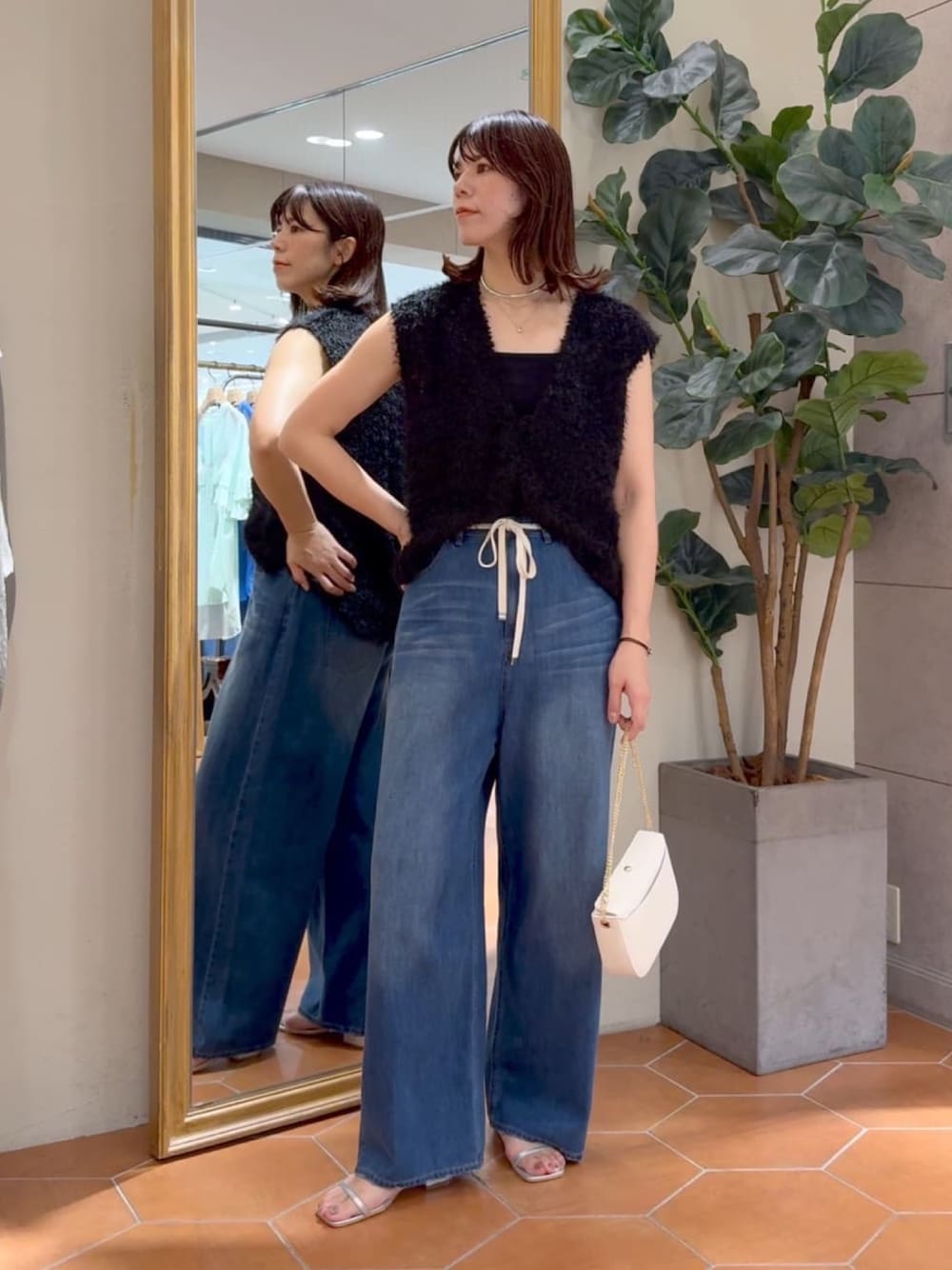 着映えアイテムで晩夏シンプルコーデ。 一枚着からレイヤードスタイルまでロングシーズン使えるフェザーベスト。深Vなのでシャツからカットソーまで幅広く着回しを楽しめます♪ デニム38サイズ着用。