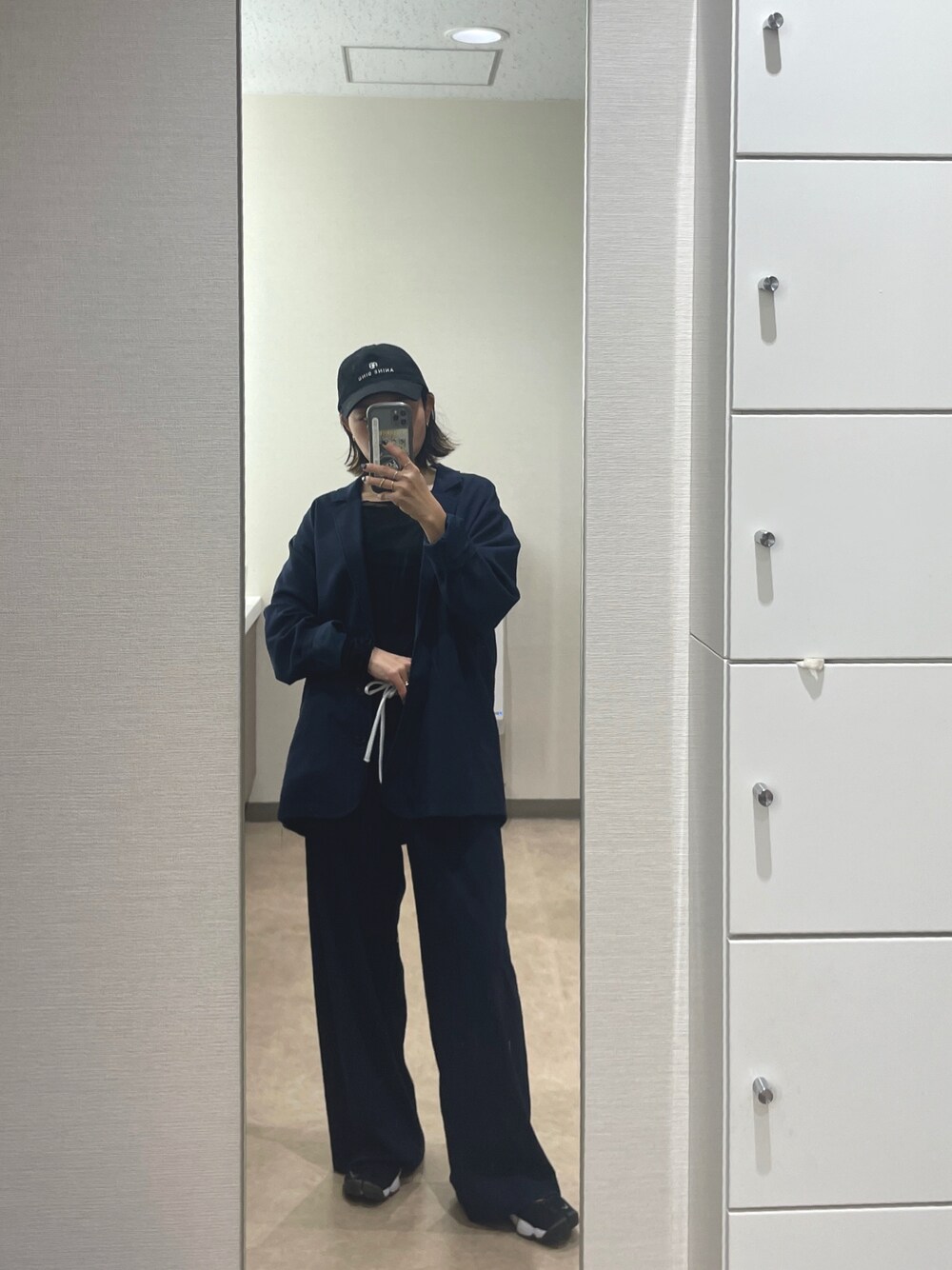 セットアップ風で綺麗めだけどCAPとスニーカーでカジュアルダウン✔️