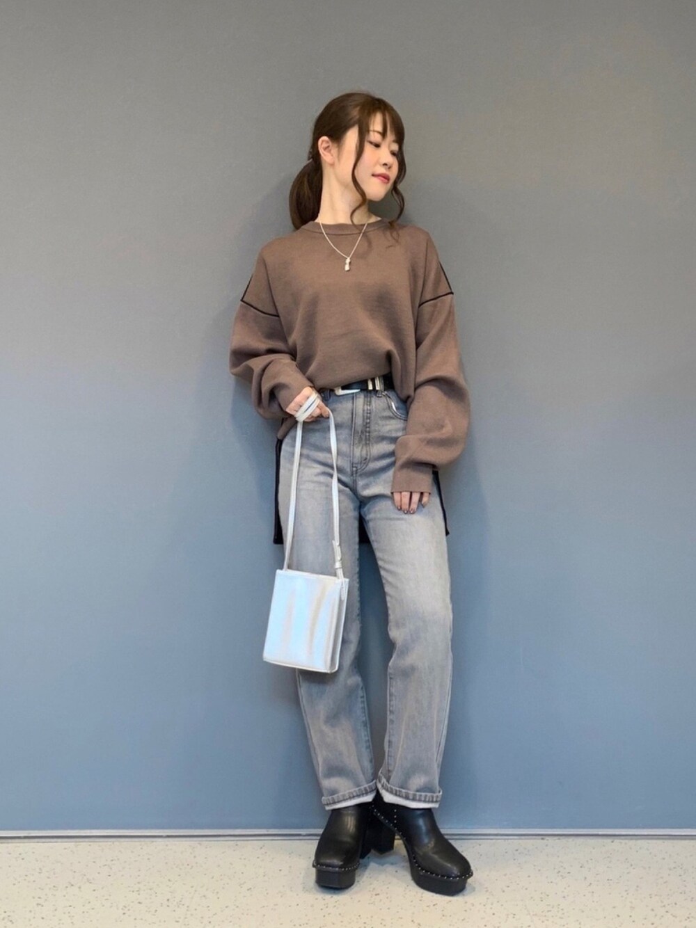 みはのニット/セーター「WフェイスBIGプルオーバー」を使ったコーディネート