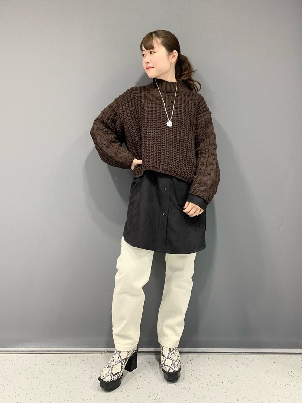 みはのニット/セーター「3Gショートニットプルオーバー」を使ったコーディネート
