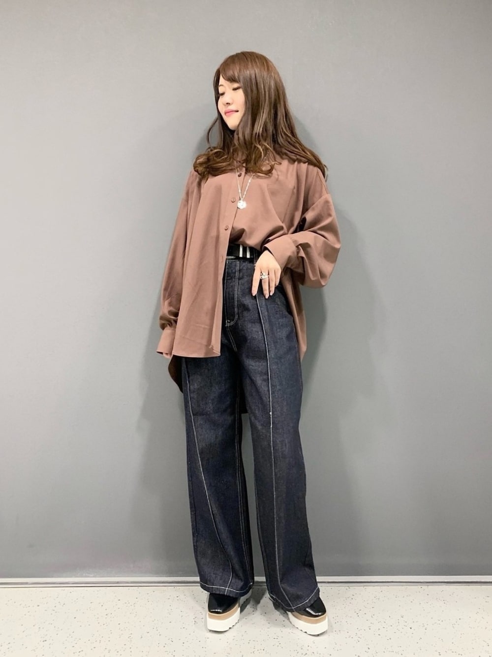 ご覧頂きありがとうございます😊 今回のコーディネートはHEPスタッフかりん考案💡 シャツのボタン下2〜3個開けて片方だけインするのがオススメのようです🙆♀️ パンツのシルエットがゆるいのでトップスはコンパクトなものやインするのがバランス良く見えるのでオススメです😌