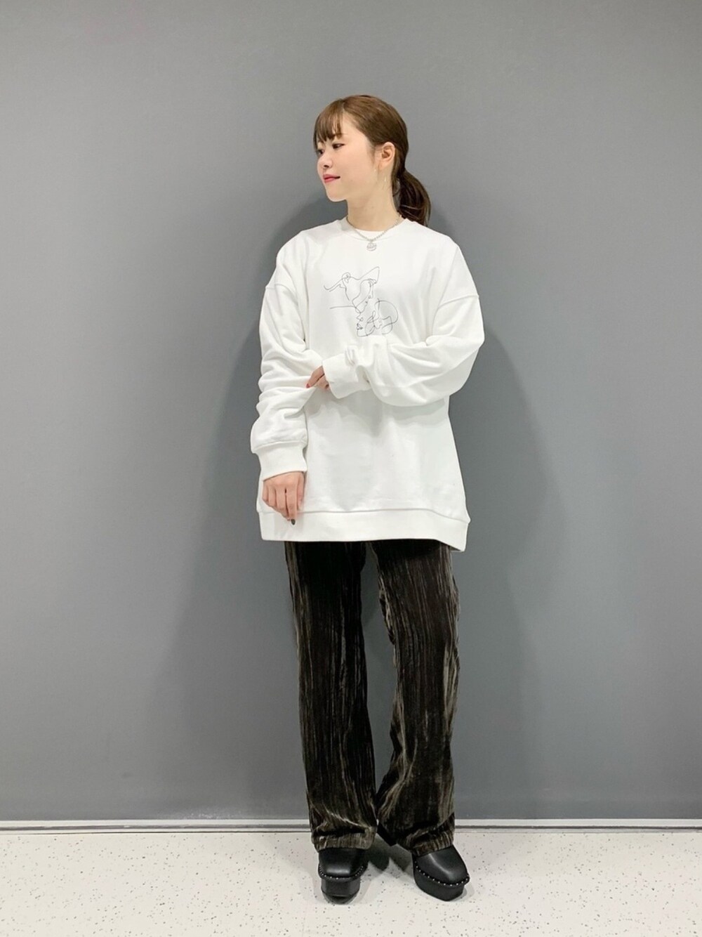 LIMを取り入れたコーデを組みました😊 今回のパンツは少し細身で、いつもよりヒップあたりがフィットします! それを踏まえて…LIMのトップスはゆったり着れるXLを選びました✨ 寂しく見えないように首元にはLIMのネックレスを😆